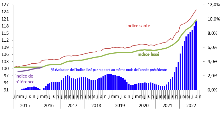 L’indice santé a lui atteint 124,92 points. Par rapport à septembre 2021, il est en hausse de 11,24%.